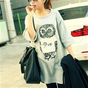寬鬆長百搭貓頭鷹圓領休閒短袖上衣 [上衣] [TE...