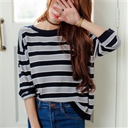 寬條紋寬鬆七分袖顯瘦蝙蝠袖套頭針織上衣 [上衣] ...