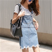 藍色牛仔背帶短裙連身裙 [連身裙] #1-淺藍色 ...