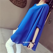 中長款寬鬆飄逸短袖雪紡衫 [上衣] #1-玫紅色 ...