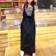 修身顯瘦條紋拼色假兩件雪紡連身裙 [連身裙] #1...