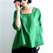 寬鬆襯衫亞麻中袖襯衫 [上衣] #1-紅色 #2-...
