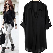 雪紡長袖寬鬆襯衫中長款襯衫 [上衣] [襯衫] #...