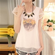 蕾絲雪紡衫圓領短袖上衣 [上衣]