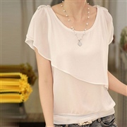顯瘦純色中款雪紡上衣 [上衣] #1-白色 #2-...