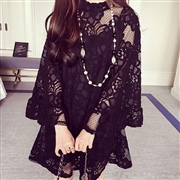 花朵蕾絲兩件套長袖連身裙 [連身裙] #1-白色 ...