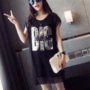 假兩件字母亮片短袖連身裙 [連身裙] #1-白色 ...