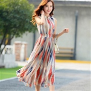 收腰無袖彩虹修身顯瘦雪紡長裙連身裙 [連身裙]