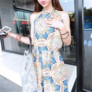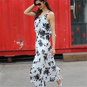 超美復古印花長裙雪紡無袖連身裙 [連身裙]