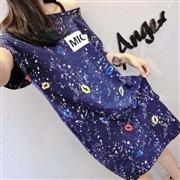 印花上衣寬鬆連身裙 [連身裙] #1-白色 #2-...