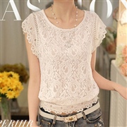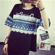 蕾絲雪紡衫圓領短袖上衣 [上衣]