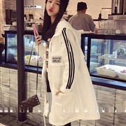 中長款字母印花連帽收腰綁帶外套 [外套] #1-白...