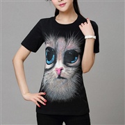 短袖貓咪印花圓領修身上衣 [上衣] [TEE] #...