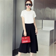 修身兩件套七分褲套裝+短袖上衣 [套裝] #1-白...