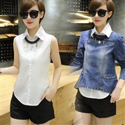 長袖牛仔外套修身顯瘦兩件套裝 [套裝]