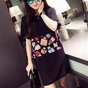 印花上衣寬鬆連身裙 [連身裙] #1-白色 #2-...