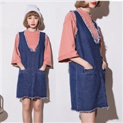 寬鬆顯瘦毛邊吊帶背心牛仔背帶裙 [連身裙]