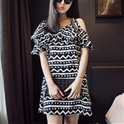 中長款露肩連身裙 [連身裙] #1-波浪 #2-花...
