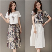復古兩件套套裝裙連身裙 [套裝] #1-白色上衣+...