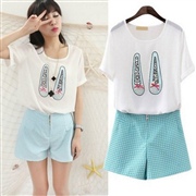 印花雪紡衫短袖波點短褲上衣兩件套 [套裝]