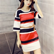 條紋拼色中袖針織連身裙 [連身裙] #1-灰色 #...