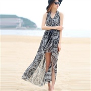 印花開叉下擺雪紡綁帶大擺長裙連身裙 [連身裙]