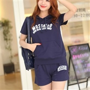 字母寬鬆短袖上衣休閒短褲套裝 [套裝] #1-粉紅...