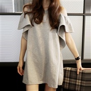 蝙蝠袖中長款短袖寬鬆露肩上衣 [連身裙] #1-白...