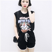 老虎印花無袖上衣+抽繩短褲套裝 [套裝] #1-白...