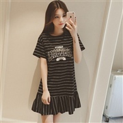 圓領字母印花寬鬆條紋上衣桖連身裙 [連身裙] #1...