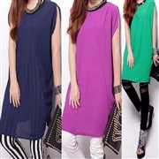 純色拼接無袖露肩不規則上衣雪紡衫 [上衣] #1-...