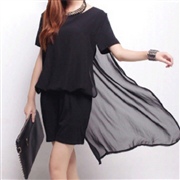 不規則前短後長短袖雪紡拼接寬鬆包臀連身裙 [連身裙...