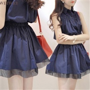 無袖襯衫領連身裙蓬蓬裙 [連身裙] #1-深藍色 ...