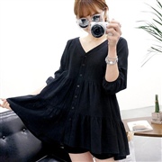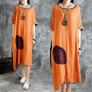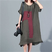 寬鬆長袍復古拼色連身裙 [連身裙]