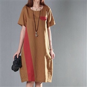 寬鬆長袍復古拼色連身裙 [連身裙]