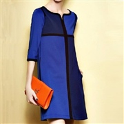 氣質拼接撞色七分袖直筒連身裙 [連身裙]