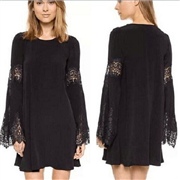 雪紡拼接蕾絲寬鬆長袖字連身裙 [連身裙] #1-白...