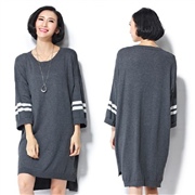 寬鬆拼接上衣 [連身裙] #1-淺灰 #2-深灰