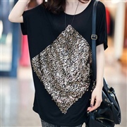 中長款繡珠片短袖上衣 [上衣] [TEE]
