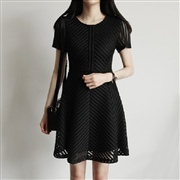 鏤空連收腰蓬蓬連身裙 [連身裙] #1-白色 #2...