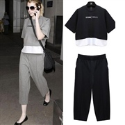 拼接寬鬆衛衣闊腿七分褲兩件套裝 [套裝] #1-灰...