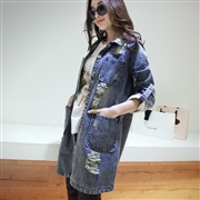 復古七分袖寬鬆中長款水洗牛仔外套 [外套] [牛仔...