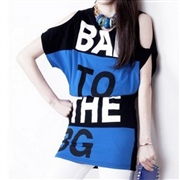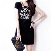 字母印花漏肩短袖長款包臀蝙蝠衫 [上衣] #1-灰...