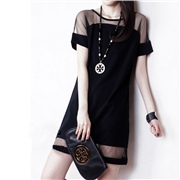 網紗拼接雪紡短袖修身包臀連身裙 [連身裙] #1-...