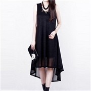 燙金雪紡拼接無袖前短後長連身裙 [連身裙]