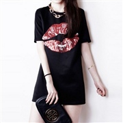 嘴唇亮片短袖修身包臀顯瘦連身裙 [連身裙] #1-...