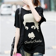 卓別林印花短袖上衣 [上衣] [TEE] #1-白...