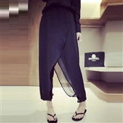 寬鬆黑紗拼接雪紡鬆緊腰哈倫褲 [褲子]
