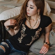 性感修身短袖純色印花上衣 [上衣] [TEE]