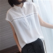 鏤空雪紡拼接短袖襯衫 [上衣] [襯衫]